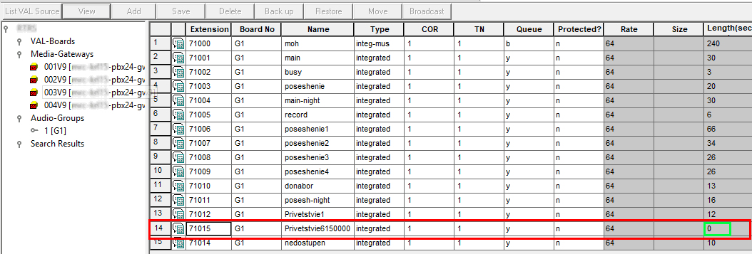 71015 integrated Privetstvie6150000 G1 4G1 — это объединенный пул из четырех медиашлюзов, т.е. любое приветствие должно существовать на каждом медиашлюзе, хранится на виртуальной плате с порядковым номером 9.